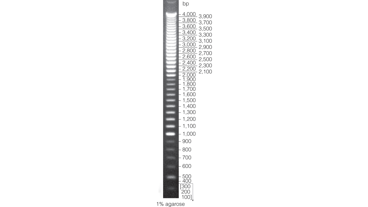 DNA Step Ladders have defined sizes with exact incremental steps between bands. The ladders are not intended for use in quantitative analysis. The DNA fragments may be stained with ethidium bromide.